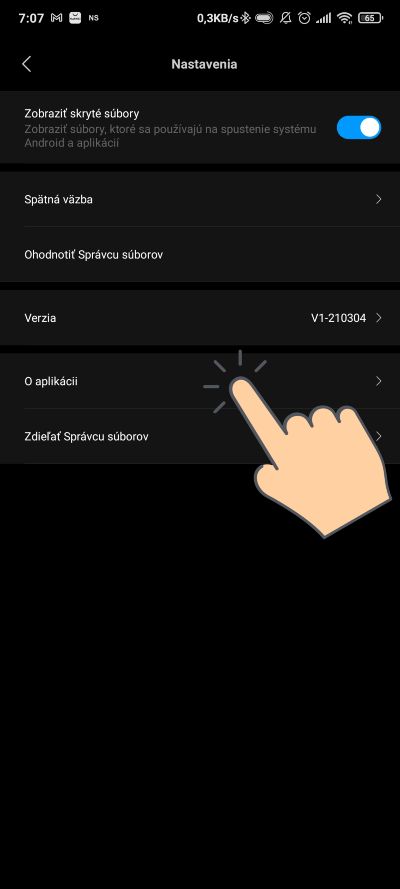 Zatiaľ sa však netešte, aktuálne ste len na polceste, aby ste vypli reklamy. Teraz je potrebné prelúskať sa jednotlivými systémovými aplikáciami, aby ste vypli reklamy. Pre lepšiu ilustráciu vám ukážeme, ako môžete vypnúť reklamu v aplikácií Správca súborov od Xiaomi. Otvorte si teraz aplikáciu a zvoľte možnosť viac. Potom otvorte Nastavenia aplikácie a následne zvoľte možnosť O aplikácií. V rámci tejto sekcie vypnite odporúčania.