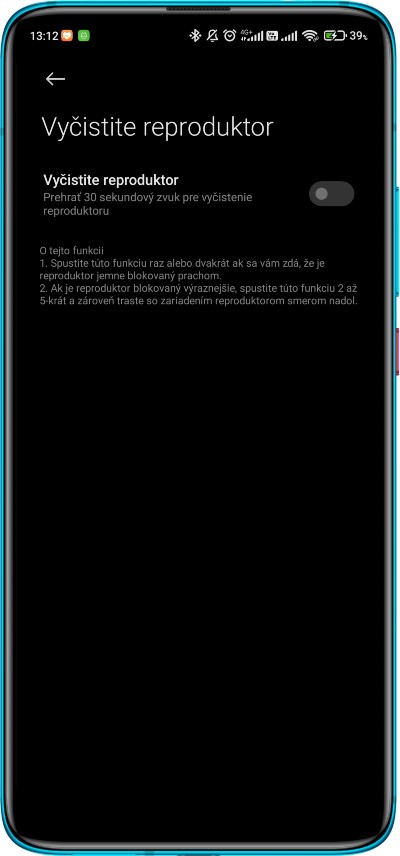 - Clear Speaker: Čistenie reproduktora