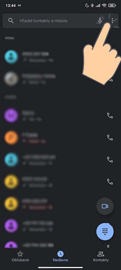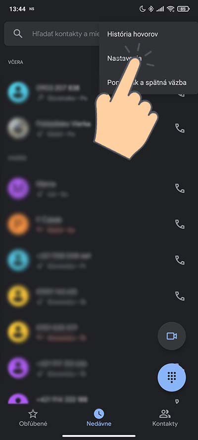 Aktivovanie samotnej funkcie je veľmi jednoduché. Ako prvé si otvorte aplikáciu Telefón a otvorte Nastavenia aplikácie (tri bodky vo vrchnej časti obrazovky) > Nastavenia.