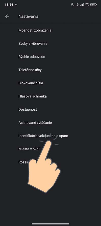Následne sa vám zobrazí ponuka, ako môžete vidieť nižšie. Otvorte možnosť Identifikácia volajúceho a spam. Následne zapnite možnosť Filtrovať hovory, ktoré sú spam.
