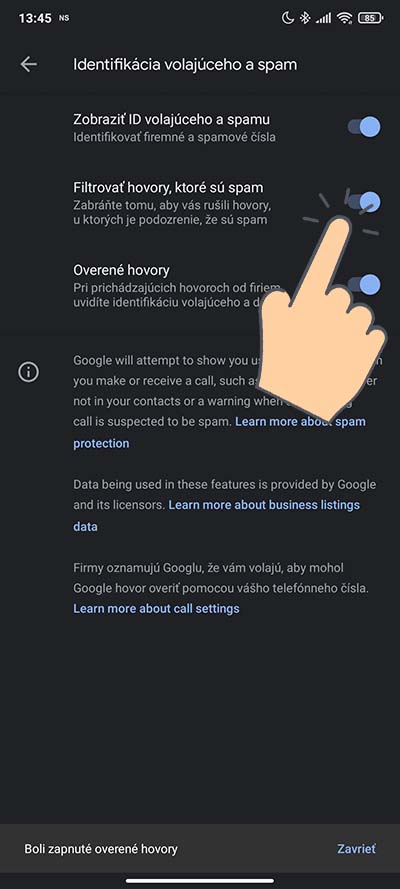 Aktivujte si možnosť blokovanie spamových hovorov