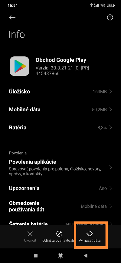 - V možnostiach aplikácie zvoľte možnosť Vymazať dáta