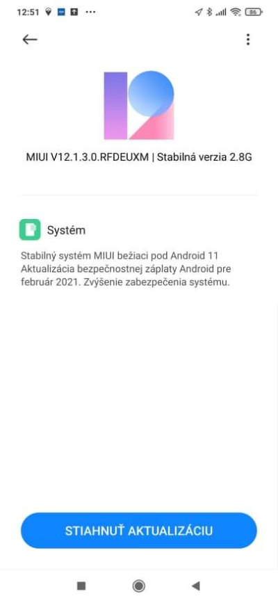 Android 11 prichádza do smartfónov s európskou verziou ROM, avšak zatiaľ s prívlastkom Stable Beta. Je teda uvoľňovaná postupne a nemusí byť momentálne rozšírená medzi všetkými užívateľmi. Aktualizácia zavítala i ku nám do redakcie a v najbližších dňoch ju budeme aktívne testovať. Na prvý pohľad však aktualizácia vyzerá bezpečne a nie sú zatiaľ hlásené žiadne problémy. či väčšie nedostatky. Aktualizácia Androidu s MIUI V12.1.3.0.RFDEUXM sa zdá veľká, keďže aktualizačný balík má až 2.8GB. Pri aktualizáciách Androidu je to však normálne, sťahovanie balíku teda chvíľu potrvá. Informácie o aktualizácii prostredníctvom OTA zobrazujeme na screenshotoch nižšie priamo zo zariadenia. Medzi hlavné zmeny po aktualizácii patrí vzhľad emoji, pričom väčšinu ostatných výhod Androidu 11 už zastrešuje MIUI vlastným riešením.