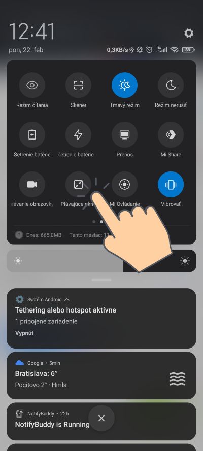 Ďalšia skvelá, ale málo známa funkcia je, plávajúce okno s aplikáciou. Vo svojej podstate ide o funkciu, ktorá umožňuje vytvoriť z aplikácie plávajúce okno nad inou aplikáciu pričom súčasne môžete takto pracovať s 2 aplikáciami. Túto funkciu využijete napríklad v situáciách, kedy dačo prepisuje, napríklad z e-mailu do nejaké formulára, či pracujete s kalkulačkou a potrebujete ju mať na očiach a podobne. Funkciu je možné zapnúť veľmi jednoduchým spôsobom, ako máte otvorenú aplikáciu, tak zrolujte notifikačnú lištu a z ponuky rýchlych akcií zvoľte možnosť plávajúce okno (pozn. redakcie: ak funkciu nemáte dostupnú, tak sa prerolujte na koniec ponuky a zvoľte možnosť upraviť. Následne si funkciu pridajte do ponuky).
