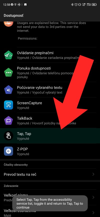 Zapnite si dotykové gesto poklepania po chrbte zariadenia
