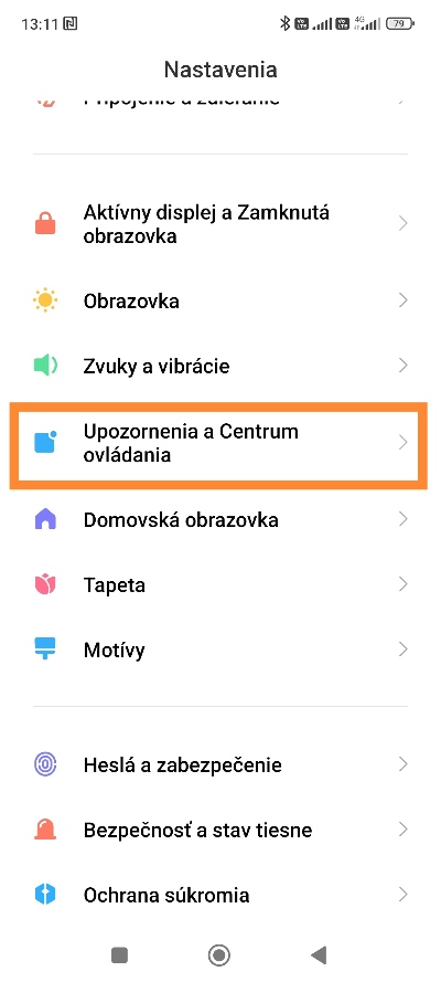 - V nastaveniach vášho smartfónu klepnite na možnosť Upozornenia a Centrum ovládania