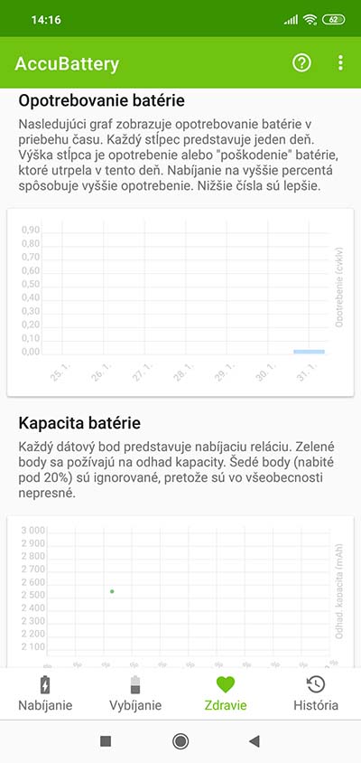 Je nutné podotknúť, že informáciu o celkovom stave batérie vám aplikácia neprinesie hneď. Na to, aby vám mohla ukázať čo najpresnejší odhad musí mať za sebou niekoľko nabíjacích cyklov. Správa sa zobrazí približne po desiatich nabíjacích cykloch.