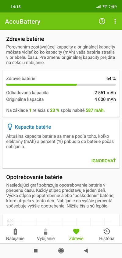 Je nutné podotknúť, že informáciu o celkovom stave batérie vám aplikácia neprinesie hneď. Na to, aby vám mohla ukázať čo najpresnejší odhad musí mať za sebou niekoľko nabíjacích cyklov. Správa sa zobrazí približne po desiatich nabíjacích cykloch.