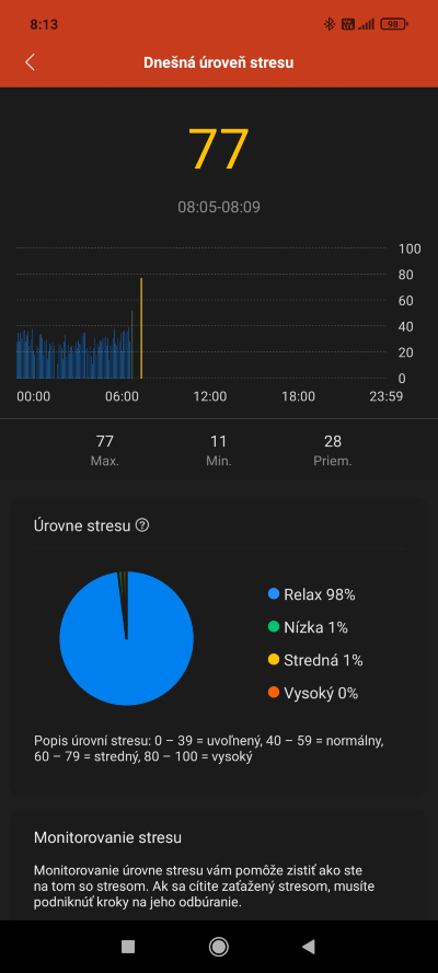 Ďalšou užitočnou funkciou je meranie nasýtenia krvi kyslíkom (SpO2). To je síce len informačné, na druhú stranu musíme uznať, že je celkom presné. Nechýba ani monitorovanie úrovne stresu a tepu, ktoré môže byť merané kontinuálne, teda neustále v intervale niekoľkých minút. Poteším i dámy, pre ktoré tu máme funkciu merania menštruačných cyklov. Tá dokáže na základe predchádzajúcich štatistík vypočítať a upozorniť vás na blížiacu sa menštruáciu i cyklus. Nezabudnime však ani na hodnotu PAI, ktorá boduje vašu fyziologickú aktivitu. Tá by v ideálnom prípade mala byť nad hodnotou 100.