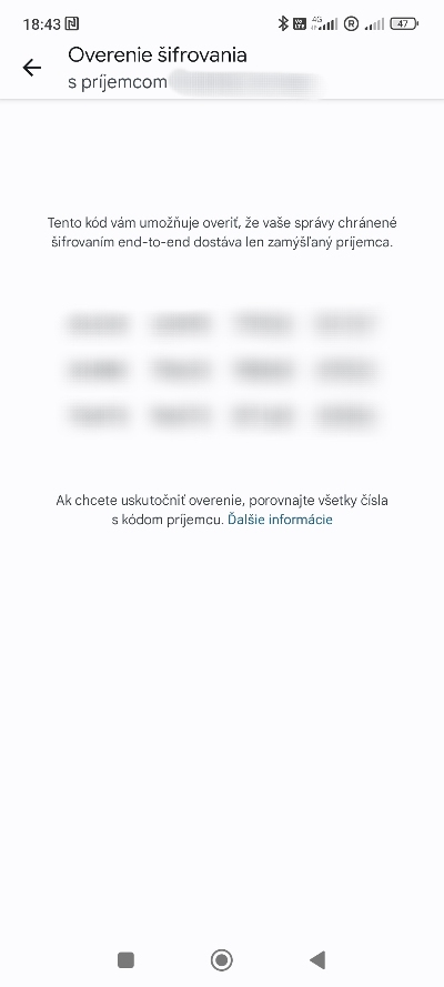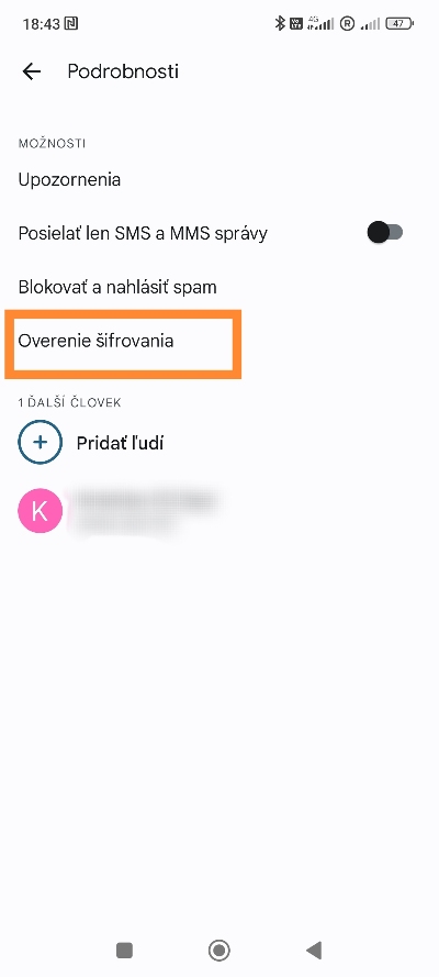 Takýmto spôsobom môžete overiť šifrovanie akéhokoľvek četu vo vašom zariadení. Pamätajte si však, že ak využíva niekto z konverzácie SMS správy a nie nové četové funkcie, overenie šifrovania sa nebude dať uskutočniť. Vaša konverzácia totiž v takom prípade nie je šifrovaná.